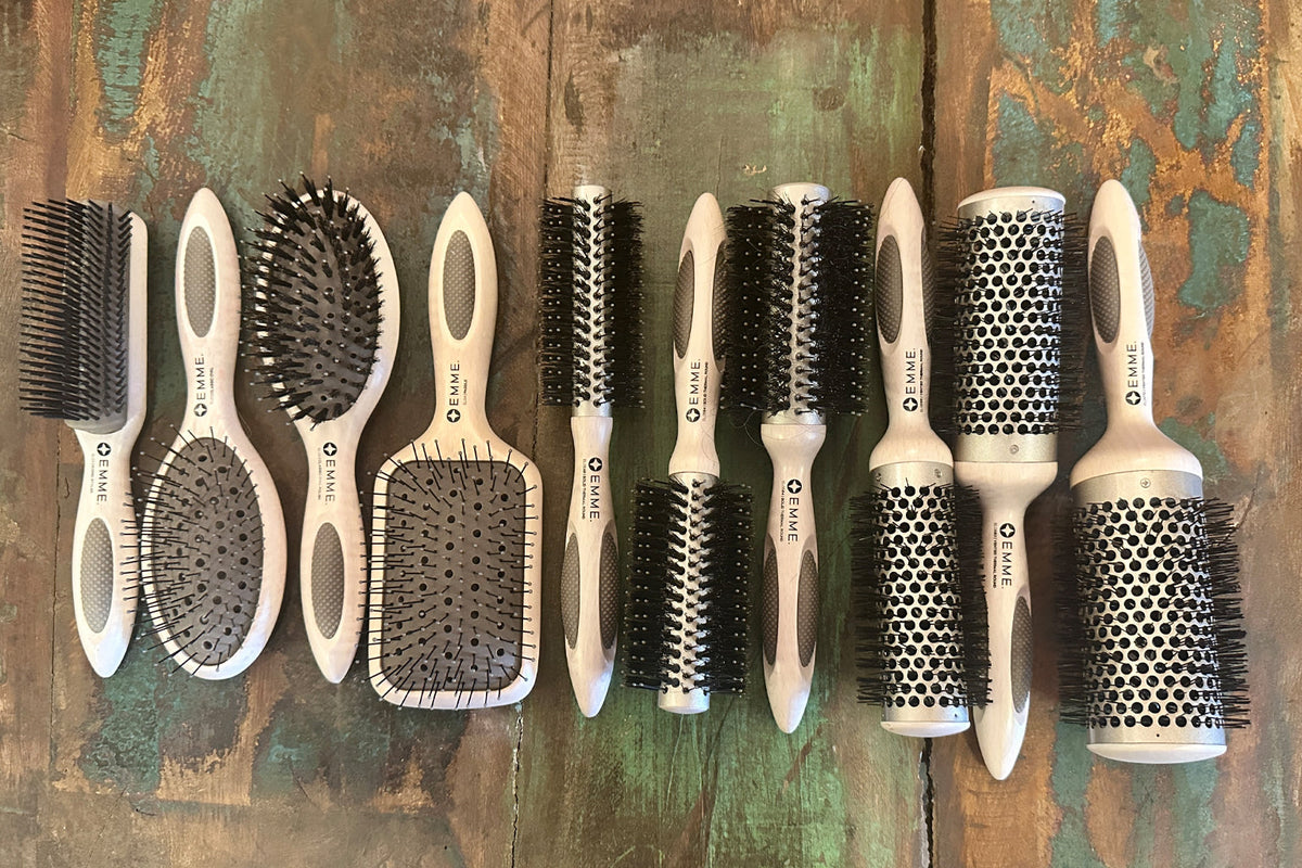 There are many brushes to choose from, some are used to create curls others to smooth, detangle or create volume. What is important to know is that the right hairbrush should be an integral part of your haircare routine. We love and recommend the EMME brush collection, Lagom. Not just because the brushes are beautifully designed, their practicality is first class. The bristles are natural boar bristles and round tipped ionic nylon. The solid ergonomic wood construction is paired with a super comfortable rubber cushion making EMME brushes super comfortable to hold.
